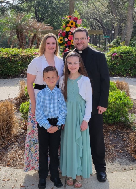 Fr. Steve and his wife Jennifer have been married since 2012. They have two children, Abigail, age 11, and Joshua, age 8.